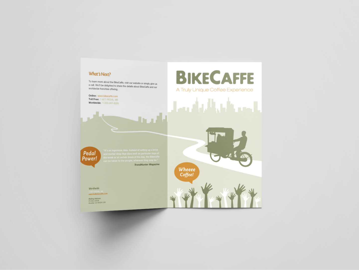 We further assisted BikeCaffé with executing its brand language throughout its offline and online collateral. We worked with their team to design everything from coffee cups, stickers, brand collateral, franchisee sitelets, and product sell sheets.